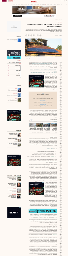 כתבה בגלובס : המדינה תחייב התקנת גגות סולאריים בבתים פרטיים – מי ישלם את החשבון?